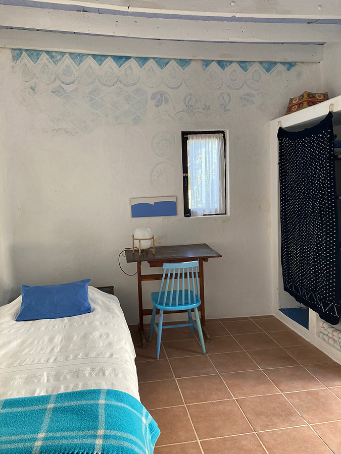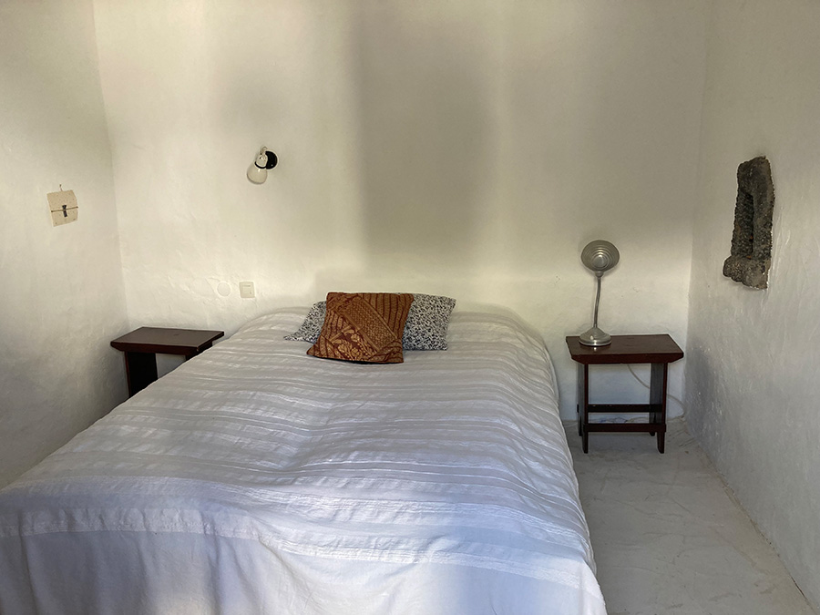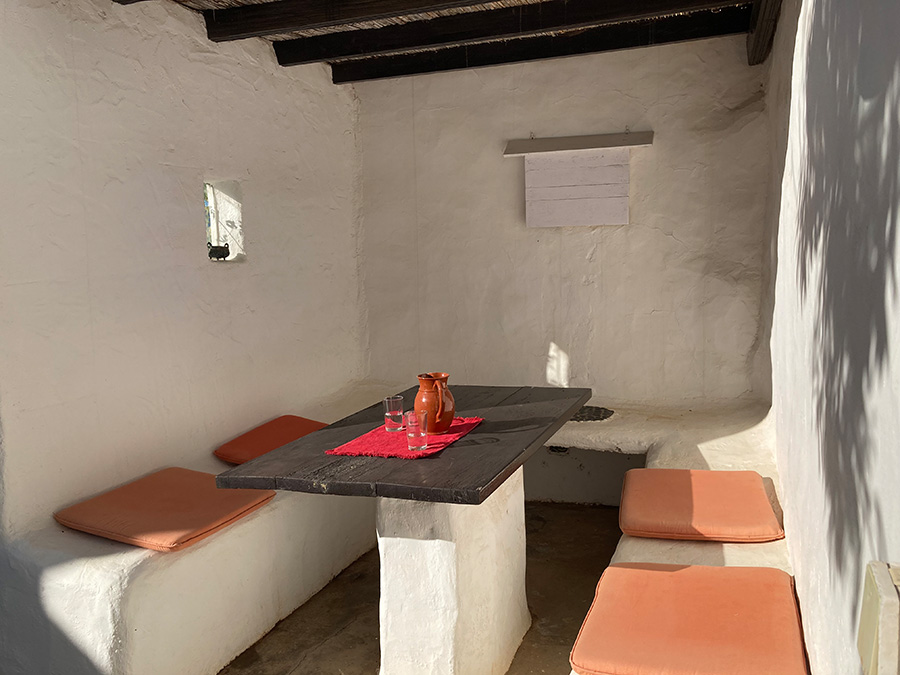 Das eine Schlafzimmer hat zwei Einzelbetten (plus Kinderbettchen auf Wunsch), das andere ein grosses Doppelbett. Der rundum gemauerte Patio mit dem gedeckten Esstisch und den gemauerten Sitz- und Liegebänken lädt zum privaten Verweilen ein. Im Ofenraum sind Gartenmöbel gelagert, die im Patio und im Garten aufgestellt werden können.